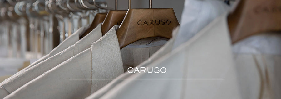 Caruso staat bekend om zijn gebruik van fijne Italiaanse stoffen van gerenommeerde weverijen zoals Loro Piana en Vitale Barberis Canonico. Deze stoffen worden met uiterste zorg geselecteerd en vakkundig verwerkt tot elegante maatwerkstukken, waaronder maatpakken, jassen, broeken en overjassen. Wat Caruso verder onderscheidt, is hun vermogen om traditie te combineren met eigentijdse esthetiek. Hun collecties omvatten zowel tijdloze klassiekers als eigentijdse ontwerpen, waardoor ze de moderne man van stijlvolle opties voorzien.